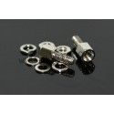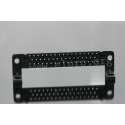 Befestigungswinkel aus schwarzem Kunststoff und Sets bestehend aus Metall-Befestigungswinkeln und -schrauben für D-Sub-Steckverbindungen.