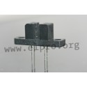 Gabel-Lichtschranken von Liteon, Everlight und Sharp jeweils zur Leiterplattenmontage oder von letzterem Hersteller auch in SMD-Ausführung.