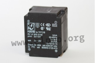 Vakuumvergossene Flachtransformatoren mit UI30 Kern und Zweikammerwicklung. Diese Trafos entsprechen EN61558 sowie VDE 0570 und verfügen über eine Luft-/Kriechstrecke von mindestens 10mm. Sie sind stückgeprüft, nicht kurzschlussfest und für die Montage auf Leiterplatten geeignet sowie für den Einsatz in 115/230V Netzen. Wir bieten die folgenden Ausführungen dieser Hahn Serie an: BV UI 305 0148, BV UI 305 0149 und BV UI 305 0150.