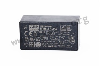 Schaltnetzteile im geschlossenen Gehäuse (PCB) mit 15W, Universaleingang, Isolationsklasse II und geringer Leerlaufleistung. Diese Geräte sind lüfterlos designt und gegen Überlast, Übertemperatur sowie Kurzschluss geschützt. Sie sind für die Montage auf Leiterplatten geeignet und entsprechen UL/EN62368-1 sowie EN55032 Klasse B. Wir bieten die folgenden Ausführungen dieser Mean Well Serie an: IRM-15-3.3, IRM-15-5, IRM-15-12, IRM-15-15 und IRM-15-24.