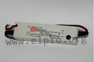 LED-Schaltnetzteile im Kunststoffgehäuse (IP64) mit Universaleingang, Konstantspannung (mixed mode), 20W und Konstantstrom. Diese Geräte entsprechen EN61000-3-2, Class C, EN55015, EN61347-1 sowie EN61347-2-13 und sind gegen Überlast (auto recovery), Kurzschluss sowie Überspannung geschützt. Sie sind nicht dimmbar und für LED-Beleuchtungsanwendungen geeignet. Wir bieten die folgenden Ausführungen dieser Mean Well Serie an: PLN-20-12, PLN-20-18, PLN-20-24, PLN-20-36 und PLN-20-48.