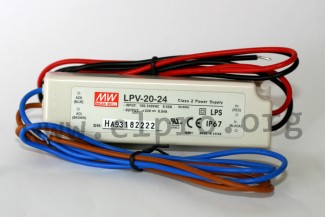 LED-Schaltnetzteile im Kunststoffgehäuse (IP67) mit Universaleingang, Konstantspannung und 20W. Diese Geräte sind nicht dimmbar und entsprechen UL1310 Class 2, UL1310, IEC62368-1, EN62368-1 sowie EN55032 Klasse B. Sie sind gegen Überlast (auto recovery), Kurzschluss sowie Überspannung geschützt und für LED-Beleuchtungsanwendungen geeignet. Wir bieten die folgenden Ausführungen dieser Mean Well Serie an: LPV-20-5, LPV-20-12, LPV-20-15 und LPV-20-24.