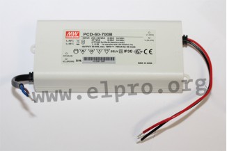 LED-Schaltnetzteile im Kunststoffgehäuse (IP42) mit Konstantstrom, Litzenanschlüssen, AC-Dimmfunktion und 60W. Diese Geräte entsprechen EN61000-3-2, Class C, EN55015, EN61347-1 sowie EN61347-2-13 und sind gegen Überlast (auto recovery), Überspannung, Überhitze sowie Kurzschluss geschützt. Sie sind für Phasenan-/-abschnittsdimmer geeignet sowie für LED-Beleuchtungsanwendungen und verfügen über einen eingebauten PFC-Schaltkreis. Wir bieten die folgenden Ausführungen dieser Mean Well Serie an: PCD-60-500B, PCD-60-700B, PCD-60-1050B, PCD-60-1400B, PCD-60-1750B, PCD-60-2000B und PCD-60-2400B.