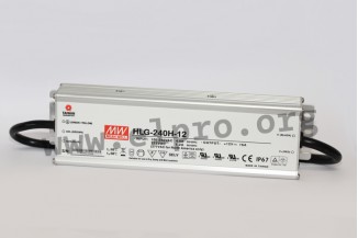 LED-Schaltnetzteile im Metallgehäuse (IP67) mit SELV-Ausgang, Konstantstrom, Konstantspannung und 240W. Diese Geräte sind für LED-Beleuchtungsanwendungen geeignet, nicht dimmbar und entsprechen EN61347-1, EN61347-2-13, EN55015, EN61000-3-2 Class C, EN61000-3-3 sowie EN61547. Sie sind gegen Überlast (auto recovery), Übertemperatur, Kurzschluss sowie Überspannung geschützt und verfügen über einen eingebauten PFC-Schaltkreis. Wir bieten die folgenden Ausführungen dieser Mean Well Serie an: HLG-240H-12, HLG-240H-15, HLG-240H-20, HLG-240H-24, HLG-240H-30, HLG-240H-36, HLG-240H-42, HLG-240H-48 und HLG-240H-54.