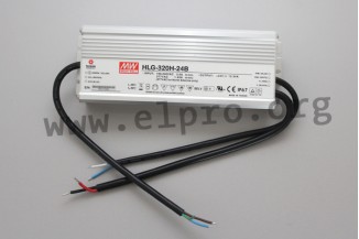 LED-Schaltnetzteile im Metallgehäuse (IP67) mit SELV-Ausgang, Konstantspannung, 3 in 1 Dimmfunktion (1 bis 10V DC, PWM, 100kOhm Potentiometer) und Konstantstrom. Diese Geräte sind für LED-Beleuchtungsanwendungen geeignet und entsprechen EN61347-2-13, EN61347-1, EN61547, EN55015, EN61000-3-2 Class C sowie EN61000-3-3. Sie sind gegen Überlast (auto recovery), Übertemperatur, Kurzschluss sowie Überspannung geschützt und verfügen über einen eingebauten PFC-Schaltkreis. Wir bieten die folgenden Ausführungen dieser Mean Well Serie an: HLG-320H-12B, HG-320H-15B, HLG-320H-20B, HLG-320H-24B, HLG-320H-30B, HLG-320H-36B, HLG-320H-42B, HLG-320H-48B und HLG-320H-54B.