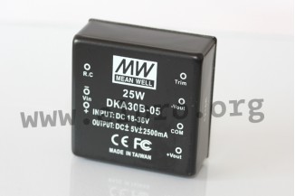 DC/DC-Wandler im 2"x1,8"-DIL-Metallgehäuse mit eingebautem EMV-Filter, Remote ON/OFF-Steuerung und Trimm-Ausgang (±10%). Diese Geräte erfordern keine Mindestlast und sind gegen Überlast sowie Kurzschluss geschützt. Sie sind für die Montage auf Leiterplatten geeignet und entsprechen EN55032 Klasse A. Wir bieten die folgenden Ausführungen dieser Mean Well Serie an: DKA30A-05, DKA30A-12, DKA30A-15, DKA30B-05, DKA30B-12, DKA30B-15, DKA30C-05, DKA30C-12 und DKA30C-15.