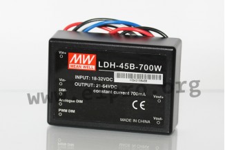 DC/DC-Wandler mit Konstantstromausgang (350 bis 1050mA) und eingebautem EMI-Filter (EN55015). Diese Geräte sind gegen Kurzschluss und Übertemperatur geschützt, wodurch sie sich ideal für LED-Beleuchtungsanwendungen eignen. Sie haben einen weiten Eingangsspannungsbereich sowie PWM-, +analog DIM- und Remote ON/OFF-Funktionen. Die Ausführungen sind mit Lötpins (LDH_), Litzen (LDH_W/LDH_WDA) oder DALI-Dimmung (LDH_DA) erhältlich. Gekühlt werden die Wandler durch freie Luftkonvektion, was eine effiziente Kühlung ermöglicht. Wir biteten diverse Ausführungen dieser Mean Well Serie an.