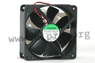 Sunon Gleichspannungslüfter mit 12 Volt, Vapolager, Gleitlager oder ein- bzw. zweifach kugelgelagert in diversen Größenabmessungen von 25x25x10mm bis 120x120x38mm. Diese Geräte sind auch als Rundlüfter in den Abmessungen Ø39,8mm, Ø48,9mm und Ø84,9mm erhätlich. Sie werden durch elektronisch kommutierte Gleichstrommotoren oder bürstenlose (Vollwellen-)Gleichstrommotoren mit oder ohne Einspulentechnik angetrieben.