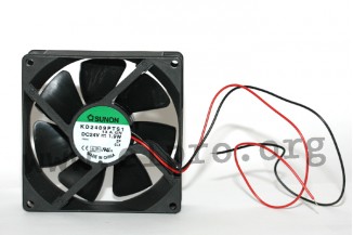 Gleichstromlüfter von Sunon mit 24V und Rahmen/Flügelrad aus Thermoplast PBT (UL94V-0) in diversen Größenabmessungen von 40x40x10mm bis 120x120x38mm.