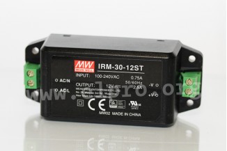 Schaltnetzteile im geschlossenen Gehäuse mit 30W, Universaleingang, Schraubklemmanschlüssen (IRM-30-_ST), geringer Leerlaufleistung und Isolationsklasse II. Diese Geräte sind für die Montage auf Leiterplatten geeignet und gegen Überlast, Überspannung sowie Kurzschluss geschützt. Sie verfügen über einen hohen Wirkungsgrad und entsprechen UL/EN62368-1 sowie EN55032 Klasse B. Wir bieten die folgenden Ausführungen dieser Mean Well Serie an: IRM-30-5, IRM-30-12, IRM-30-15, IRM-30-24, IRM-30-48, IRM-30-5ST, IRM-30-12ST, IRM-30-15ST, IRM-30-24ST und IRM-30-48ST.