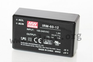 Schaltnetzteile im geschlossenen Gehäuse mit 60W, Isolationsklasse II, Universaleingang und geringer Leerlaufleistung. Diese Geräte sind sowohl für die Montage auf Leiterplatten (IRM-60_) als auch für die B...