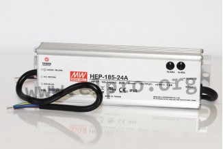 Schaltnetzteile im geschlossenen Aluminiumgehäuse mit 185W, Schraubanschlüssen, 6kV Surge Immunity Level und Universaleingang. Diese Geräte verfügen über einen eingebauten PFC-Schaltkreis und sind gegen Überlast (auto recovery), Überspannung sowie Kurzschluss geschützt. Sie sind für den Einsatz in rauen Umgebungen geeignet und entsprechen EN61000-3-2, EN61000-3-3, EN55022 sowie EN60950-1. Wir bieten die folgenden Ausführungen dieser Mean Well Serie an: HEP-185-12A, HEP-185-15A, HEP-185-24A, HEP-185-36A, HEP-185-48A und HEP-185-54A.