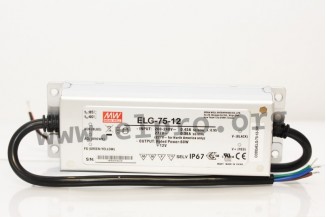 LED-Schaltnetzteile im Metallgehäuse (IP67) mit Schutzleiter PE, SELV-Ausgang, Konstantspannung und Konstantstrom. Diese Geräte entsprechen EN61347-1, EN61347-2-13, EN55015, EN61000-3-2 Class C, EN61000-3-3, EN61547 sowie 6kV Surge Immunity Level und sind für LED-Beleuchtungsanwendungen geeignet. Sie sind gegen Überspannung, Übertemperatur, Überlast (auto recovery) sowie Kurzschluss geschützt und verfügen über einen eingebauten PFC-Schaltkreis. Wir bieten die folgenden Ausführungen dieser Mean Well Serie an: ELG-75-12-3Y, ELG-75-24-3Y, ELG-75-36-3Y und ELG-75-48-3Y.