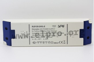 Flickerfreie LED-Schaltnetzteile im Kunststoffgehäuse (IP20) mit 120W, Konstantspannung, SELV-Ausgang und Schutzklasse II. Diese Geräte verfügen über einen Triac-Dimmer und sind gegen Überlast, Übertemperatur, Kurzschluss sowie Überspannung geschützt. Sie sind für LED-Beleuchtungsanwendungen geeignet und entsprechen EN55015, EN61347-1 sowie EN61347-2-13. Wir bieten die Ausführung SLD120-24VL-E dieser Self Serie an.