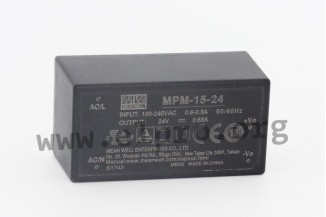 Schaltnetzteile im geschlossenen Gehäuse mit 15W, Isolationsklasse II, niedriger Leerlaufleistung und Universaleingang. Diese Geräte sind für medizinische Anwendungen geeignet (2xMOPP) und gegen Überlast (auto recovery), Übertemperatur, Kurzschluss sowie Überspannung geschützt. Sie sind für die Montage auf Leiterplatten geeignet und entsprechen EN60601-1, EN55011, IEC60601-1, IEC60335-1 sowie EN60335-1. Wir bieten die folgenden Ausführungen dieser Mean Well Serie an: MPM-15-3.3, MPM-15-5, MPM-15-12, MPM-15-15 und MPM-15-24.