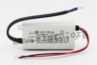 LED-Schaltnetzteile im Kunststoffgehäuse (IP42) mit Universaleingang, 16W und Konstantspannung. Diese Geräte entsprechen EN55032 und sind außerdem geschützt gegen Kurzschluss sowie Überspannung. Sie sind geeignet für LED-Beleuchtungsanwendungen und verfügen über einen Überlastschutz durch Abschalten (auto recovery). Wir bieten die folgenden Ausführungen dieser Mean Well Serie an: APV-16E-5, APV-16E-12, APV-16E-15 und APV-16E-24.