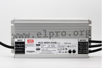 LED-Schaltnetzteile im Metallgehäuse (IP65) mit 480W, SELV-Ausgang, 3 in 1 Dimmfunktion (1 bis 10V DC, PWM, 100kOhm Potentiometer) und internem Potentiometer zur Einstellung der Strombegrenzung/Ausgangsspannung. Diese Geräte entsprechen EN61347-1, EN61347-2-13, EN55015, EN61000-3-2 Class C, EN61000-3-3 sowie EN61547 und verfügen über einen eingebauten PFC-Schaltkreis. Sie sind für LED-Beleuchtungsanwendungen geeignet und gegen Überlast (auto recovery), Übertemperatur, Kurzschluss sowie Überspannung geschützt. Wir bieten die folgenden Ausführungen dieser Mean Well Serie an: HLG-480H-24AB, HLG-480H-30AB, HLG-480H-36AB, HLG-480H-42AB, HLG-480H-48AB und HLG-480H-54AB.