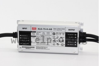LED-Schaltnetzteile im Metallgehäuse (IP67) mit 75W, Konstantleistung (XLG-75-L/H-A) und Konstantstrom (XLG-75-12/24-A). Diese Geräte verfügen außerdem über einen Universaleingang von 100 bis 305V AC, einen eingebauten PFC-Schaltkreis und eine niedrige Leerlaufleistung (<0,5W). Sie sind für LED-Beleuchtungsanwendungen geeignet und gegen Kurzschluss, Überstrom, Überspannung, Übertemperatur sowie Überlast durch Strombegrenzung (auto recovery) geschützt. Diese Netzteile entsprechen den Sichterheitsnormen EN61347-1, EN61347-2-13 und EN62384, den EMV-Normen EN55015, EN61000-3-2 Class C, EN61000-3-3 und EN61547 sowie einem Surge Immunity Level von bis zu 6kV. Außer dem L-Typ sind alle Ausführungen SELV konform. Wir bieten die folgenden Typen dieser Mean Well Serie an: XLG-75-12-A, XLG-75-24-A, XLG-75-L-A, XLG-75-H-A, XLG-75-L-AB und XLG-75-H-AB.