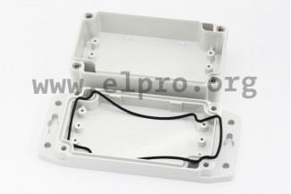 Graue ABS-Gehäuse (UL94 HB) mit Flansch und IP68, ideal geeignet für die Montage von Leiterplatten und Panels in rauen Umgebungen. Diese Gehäuse haben einen abgedichteten Deckel mit zweiteiliger Nut-Feder-...