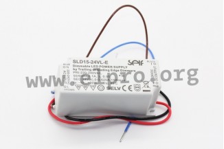 Flickerfreie LED-Schaltnetzteile im Kunststoffgehäuse (IP20) mit 15W, Konstantspannung, Triac-Dimmer, Schutzklasse II und SELV-Ausgang. Diese Geräte sind gegen Überlast, Kurzschluss, Überspannung sowie Übertemperatur geschützt. Sie sind für LED-Anwendungen geeignet und entsprechen EN61347-1, EN61347-2-13, EN55015 und EN61000-3-2. Wir bieten die Ausführung SLD-15-24VL-E dieser Self Serie an.