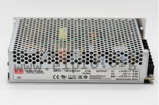 Schaltnetzteile im geschlossenen Gehäuse mit 155W, Universaleingang, Schraubanschlüssen, Batterielader und zwei Ausgangsspannungen. Diese Geräte verfügen über einen eingebauten PFC-Schaltkreis und sind gegen Überlast (auto recovery), Überspannung sowie Kurzschluss geschützt. Sie besitzen eine USV-Funktion und entsprechen UL60950-1, EN60950-1 sowie EN55032 Klasse B. Wir bieten die folgenden Ausführungen dieser Mean Well Serie an: ADD-155A und ADD-155B.