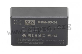 Schaltnetzteile in geschlossener Bauform mit 65W, Universaleingang und Isolationsklasse II. Diese Geräte sind sowohl für die Montage auf Leiterplatten (MPM-65-_) als auch für die Befestigung mittels Schraubklem...