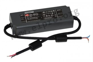 LED-Schaltnetzteile im Kunststoffgehäuse (IP67) mit niedriger Leerlaufleistung, Konstantspannung/Konstantstrom (CV/CC), Universaleingang und 200W. Diese flickerfreien Geräte entsprechen UL8750, EN61347-2-13, EN61347-1, IEC61347-2-13, IEC61347-1 sowie EN55015 und verfügen über einen eingebauten PFC-Schaltkreis. Sie sind gegen Überspannung, Überlast, Übertemperatur sowie Kurschluss geschützt und eignen sich für den Einsatz als Notlichtbetriebsgerät sowie für LED-Beleuchtungsanwendungen. Wir bieten die folgenden Ausführungen dieser Mean Well Serie an: NPF-200-12, NPF-200-24, NPF-200-36, NPF-200-42, NPF-200-48 und NPF-200-54.