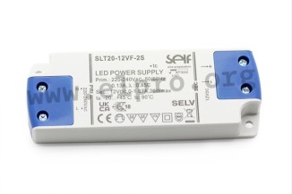 LED-Schaltnetzteile im Kunststoffgehäuse (IP20) mit 20W, SELV-Ausgang, Schutzklasse II und Konstantspannung. Diese Geräte sind für LED-Beleuchtungsanwendungen geeignet und gegen Überlast, Übertemperatur, Kurzschluss sowie Überspannung geschützt. Sie sind nicht dimmbar und entsprechen EN61347-1, EN61347-2-13 sowie EN55015. Wir bieten die folgenden Ausführungen dieser Self Serie an: SLT20-12VF-2S und SLT20-24VF-2S.
