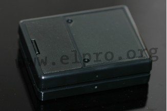 * kleines, graues ABS-Gehäuse mit Batteriefach für eine 9V-Blockbatterie und Clip