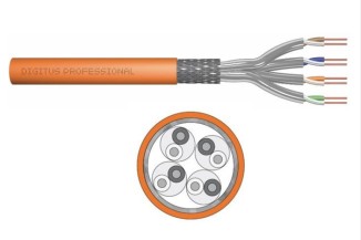 Twisted Pair Installationskabel in Orange. Diese Cat. 7 Datenkabel sind für Gebäudeverkabelungen im primären, sekundären sowie tertiären Bereich geeignet und für den Aufbau von Verkabelungsstrecken der Klasse F (600/1200MHz). Sie verfügen über Gesamtschirmung aus Kupfergeflecht sowie einer Abschirmung der Einzelpaare aus Aluminiumkaschierter Polyesterfolie und entsprechen ISO/IEC 11801 3rd Ed, DIN EN 50173 sowie DIN EN 50288-2-1. Wir bieten die folgenden Ausführungen dieser Digitus Serie an: DK-1743-VH-1, DK-1743-VH-D-1, DK-1743-VH-5, DK-1743-VH-10, DK-1743-VH-D-5, DK-1744-VH-5 und DK-1843-VH-5.