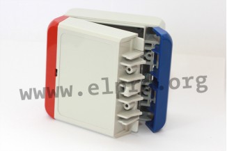 ABS-Gehäuse, lichtgrau (ähnlich RAL 7035) bestehend aus Unterteil, Deckel und lichtgrauem Scharnierverschluss (alternativ farbige Scharnierverschlüsse in feuerrot, ultramarinblaublau und verkehrsge...