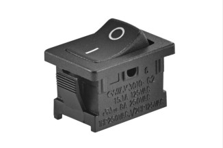 Schwarze, unbeleuchtete Wippenschalter mit 8A. Diese Schalter haben einen Öffner, bzw. einen Wechsler (3010-C1T2G2C02B02 und 3010P5C1T2G2C02B02) und sind für 12,9x19,2mm große Gehäuseausschnitte geeign...
