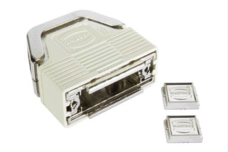 D-Sub-Gehäuse aus Kunststoff mit passenden Verriegelungsbolzen aus Edelstahl. Wir bieten diverse Ausführungen dieser Harting Serie an.