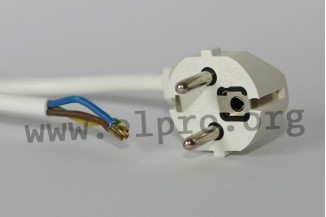 * mit angespritztem Schutzkontakt-Winkelstecker, zugelassen für 10/16A, 250V AC, doppeltes Schutzleitersystem nach DIN 49.441, CEE7/VII
