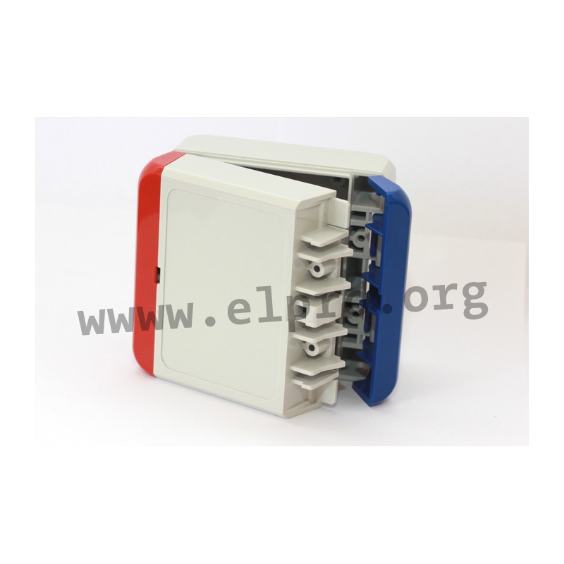 ABS-Gehäuse, lichtgrau (ähnlich RAL 7035) bestehend aus Unterteil, Deckel und lichtgrauem Scharnierverschluss (alternativ farbige Scharnierverschlüsse in feuerrot, ultramarinblaublau und verkehrsgelb). Montagemöglichkeit für rechteckige Frontplatten oder Platinen, optional zum Scharnierverschluss können die Gehäuse auch verschraubt werden, eine Plombierung ist möglich. Wir bieten diverse Außführungen dieser Bopla Serie, sowie zubehör dafür an.