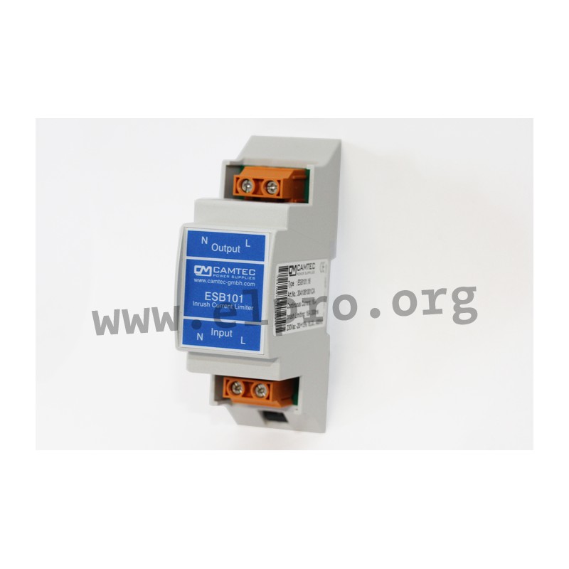 Ein- (ESB101_/ESB201_) bzw. dreiphasige (ESB303_) Spitzen-/Effektivstrombegrenzer im Kunststoffgehäuse (IP20/UL94V-0) für kapazitive Lasten (1000µF bis 10.000µF). Diese Geräte verfügen über ein integriertes Bypass-Relais sowie eine eingebaute Temperaturüberwachung und entsprechen EN60950-1, EN61010-1, EN62368-1 sowie EN55032. Wir bieten diverse Ausführungen dieser Camtec Serie an.