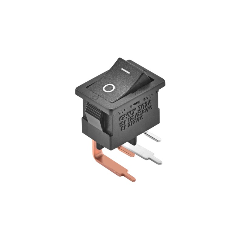 Schwarze, unbeleuchtete Wippenschalter mit 16A. Diese Schalter haben zwei Öffner, bzw. einen Öffner (3024-P5T21SBKBK) und sind für unterschiedlich große Gehäuseausschnitte geeignet. Wir bieten die folgenden Ausführungen dieser Chily Precision Serie an: 3024-P5T20DBKBK, 3024-K5P10T10SB05, 3024-P5T21SBKBK und 3024-P13T21DB20.