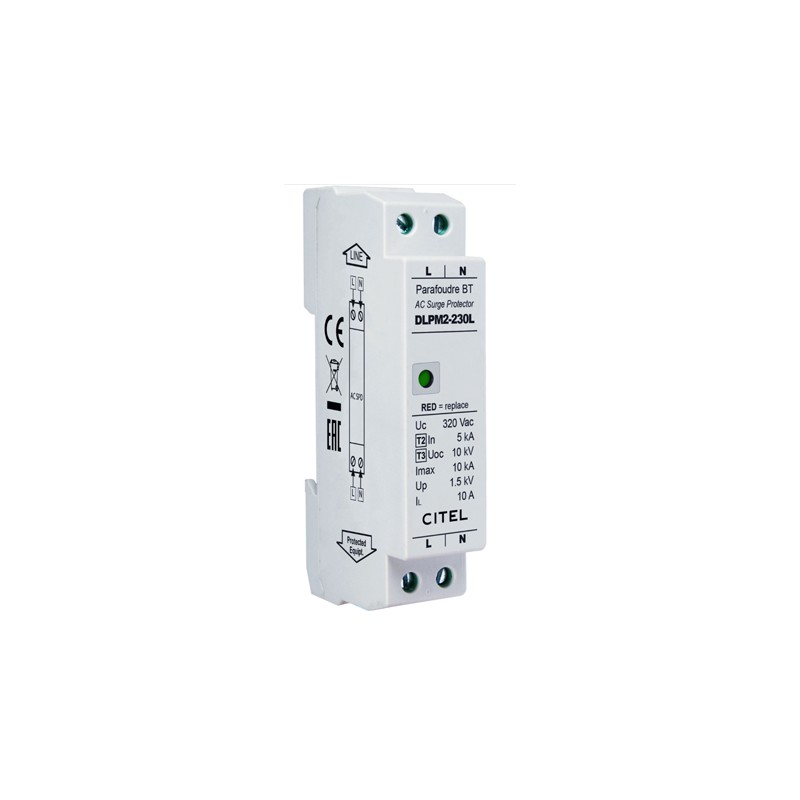 256206 DLPM2-230L DLPM2-230L Citel Überspannungsschutzgeräte der Serien DLPM. Typ 2+3 Überspannungsschutzgeräte im Kunststoffgehäuse (IP20) mit Schutzklasse I (DLPM1_) / Schutzklasse II (DLPM2_) und Statussignalisierung. Diese Geräte sind für den Einbau in Endgeräte geeignet und über Steckklemmen anschließbar. Wir bieten die folgenden Ausführungen dieser Citel Serie an: DLPM1-230L, DLPM1-230L/Y und DLPM2-230L. Überspannungsschutz: Typ 2+3 maximaler Ableitstrom: 10kA Schutzpegel: 1500V AC Betriebstemperaturbereich: -40 bis +85°C