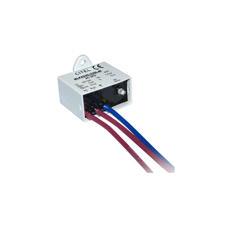 256185 MLPX2VG-230L-W MLPX2VG-230L-W Citel Überspannungsschutzgeräte der Serien MLPC, MLPX und MLPM. Typ 2+3 Überspannungsschutzgeräte im Kunststoffgehäuse (IP20/IP67) mit Schutzklasse I (MLPC1_, MLPX1_,MLPM1_) / Schutzklasse II (MLPC2_, MLPX2_, MLPM2_) und Statussignalisierung. Diese Geräte sind für den Einbau in Endgeräte geeignet und über Federklemmen (MLPC_), Litzen (MLPX_) oder Steckklemme (MLPM_) anschließbar. Sie schützen gegen erdgebundene Potentialanhebungen (SKL I) sowie gegen Überspannungen aus dem Netz, sind festverdrahtet und entsprechen EN61347-11 sowie VDE0675. Wir bieten diverse Ausführungen dieser Citel Serie an. geschützte Phasen: 1 Überspannungsschutz: Typ 2+3 maximaler Ableitstrom: 10kA Schutzpegel: 1500V AC Stromkreistrennung: ja Betriebstemperaturbereich: -40 bis +85°C