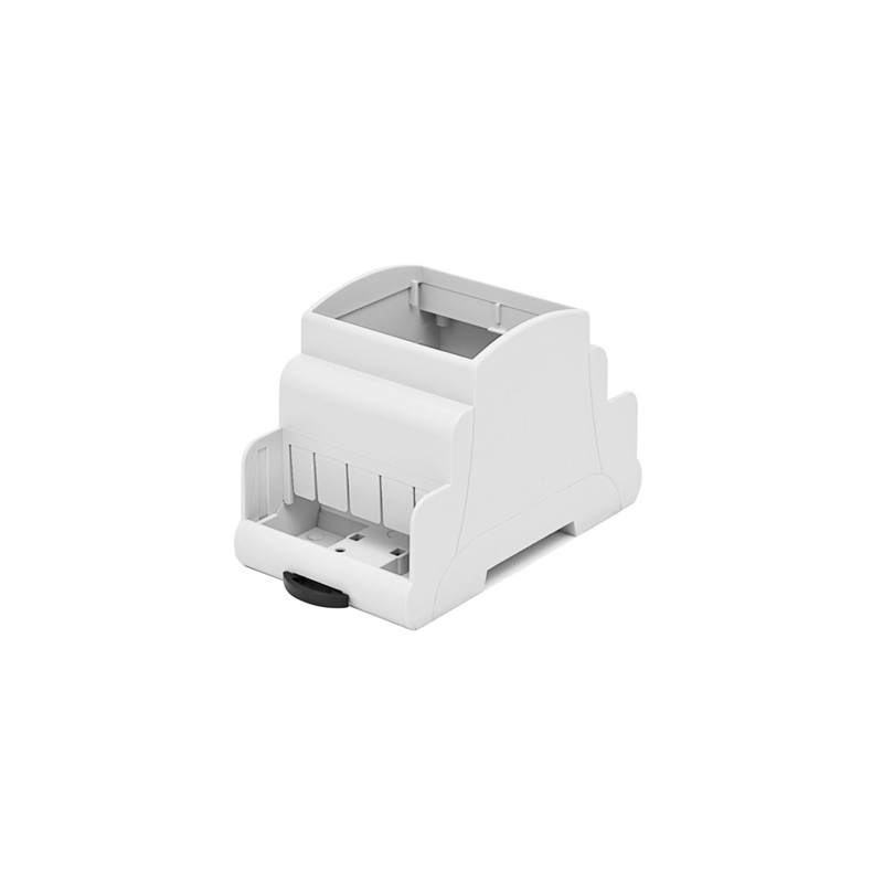 ABS-Gehäuse in grau und mit unterschiedlichen Abmessungen. Diese Gehäuse sind für die DIN-Schienenmontage geeignet und sie sind als Ausführung mit abnehmbaren Seitenwänden (MR_TK-GR) oder mit Lüftungsöffnungen (MR_TK/AR) verfügbar. Wir bieten die folgenden Ausführungen dieser Elbag Serie an: MR1/TK-GR, MR2/TK-GR, MR3/TK-GR, MR4/TK-GR, MR4/TK/AR, MR6/TK-GR, MR6/TK/AR, MR9/TK-GR und MR9/TK/AR.