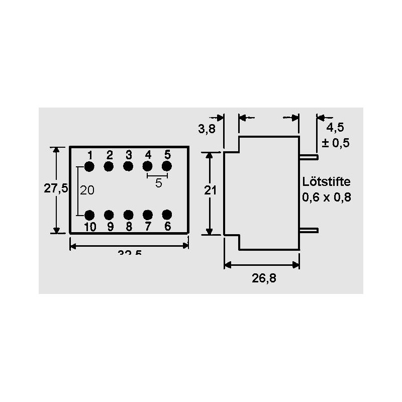 Transformatoren mit 2,6VA und EI30 Kern. Diese Trafos sind unbedingt kurzschlussfest und entsprechen Temperaturbeständigkeitsklasse Ta 40/F. Sie sind für die Montage auf Leiterplatten geeignet und vakuumvergossen. Wir bieten die folgenden Ausführungen dieser Hahn Serie an: BV EI 304 2041, BV EI 304 2042, BV EI 304 2043, BV EI 304 2045, BV EI 304 2046, BV EI 304 2047, BV EI 304 2048 und BV EI 304 2524.