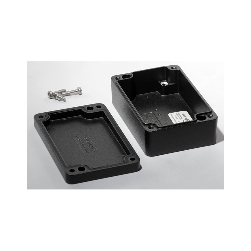 Robuste, wasserdichte Druckgussgehäsue aus Aluminium (IP68) geeignet für die Wandmontage. Diese dickwandigen Gehäuse haben eine zweiteilige Nut-Feder-Konstruktion mit einer austauschbaren Silikondichtung. Der Deckel wird mit vier versenkten, selbstsichernden Edelstahlschrauben befestigt.