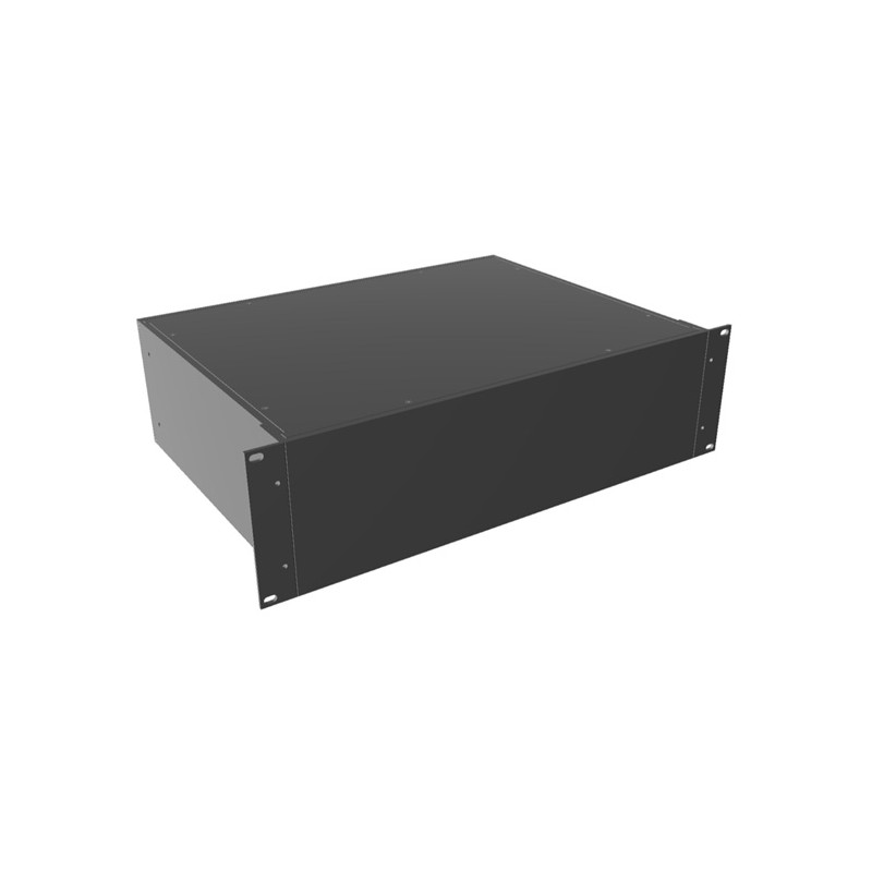 19" Einschubgehäuse aus Aluminium, in der Farbe Schwarz und in verschiedenen Abmessungen. Diese Gehäuse sind pulverbeschichtet, für die Schraub Montage geeignet und sind auch in Ausführung mit Lüftungsöffnung (RM_U_VBK) erhältlich. Wir bieten diverse Ausführungen dieser Hammond Serie an.