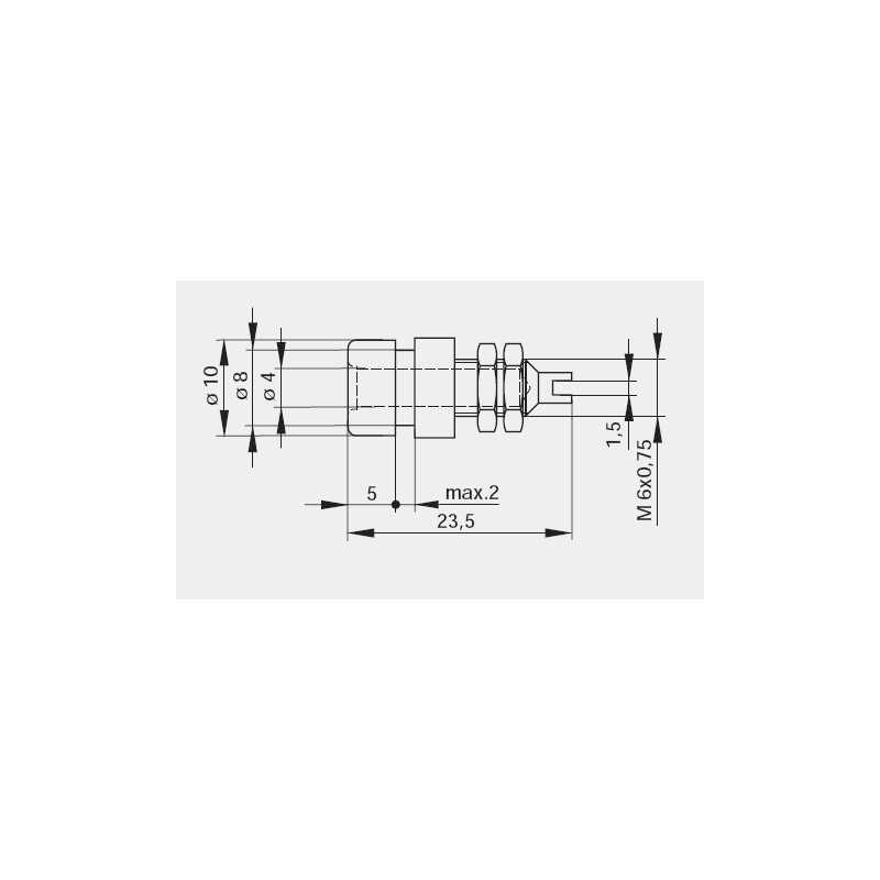 * Buchse mit Isolierkopf und -ring zum Einbau in Gerätechassis und Schalttafeln bis 2mm Wandstärke