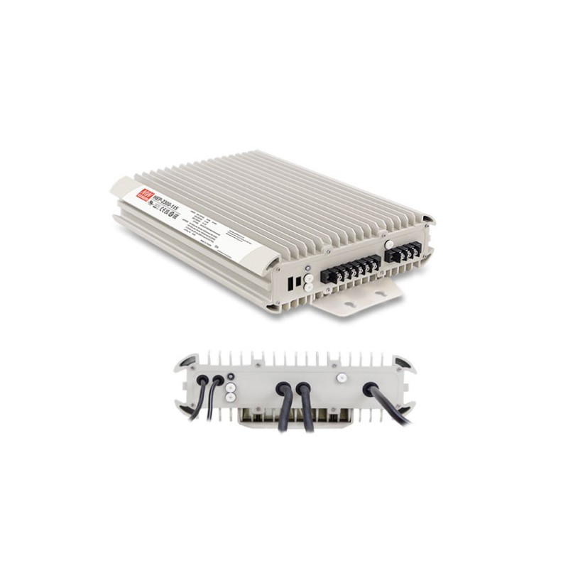 Schaltnetzteile im geschlossenen Aluminiumgehäuse mit 2300W, Universaleingang, Remote ON/OFF-Steuerung, aktivem DC-OK-Signal, LED-Anzeige und CANBus-Schnittstelle. Diese Geräte sind für raue Umgebungen geeignet, verfügen über einen eingebauten PFC-Schaltkreis, eine programmierbare Ausgangsspannung / einen programmierbaren Konstantstrompegel und sind gegen Überlast, Übertemperatur, Kurzschluss sowie Überspannung geschützt. Sie haben eine programmierbare 2/3-stufige Ladekurve, sind für Li-Ionen- sowie Bleiakkus geeignet und entsprechen EN62368-1, EN55032 Klasse A sowie EN55032 Klasse B. Wir bieten die folgenden Ausführungen dieser Mean Well Serie an: HEP-2300-115, HEP-2300-115W, HEP-2300-230, HEP-2300-230W, HEP-2300-380 und HEP-2300-380W.
