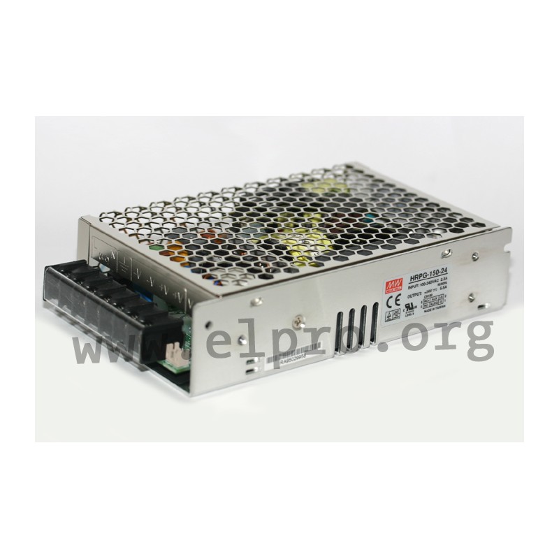 Schaltnetzteile im geschlossenen Gehäuse mit 150W, Schraubanschlüssen, Universaleingang und niedriger Bauhöhe. Diese Geräte verfügen über einen eingebauten PFC-Schaltkreis und sind gegen Überlast (auto recovery), Überspannung (300V AC / 5s) sowie Kurzschluss geschützt. Sie haben ein Sensoranschluss für die korrekte Spannung an der Last und entsprechen UL/EN62368-1, EN55032 Klasse B, EN61000-3-2 sowie EN61000-3-3. Wir bieten die folgenden Ausführungen dieser Mean Well Serie an: HRP-150-3.3, HRP-150-5, HRP-150-7.5, HRP-150-12, HRP-150-15, HRP-150-24, HRP-150-36 und HRP-150-48.