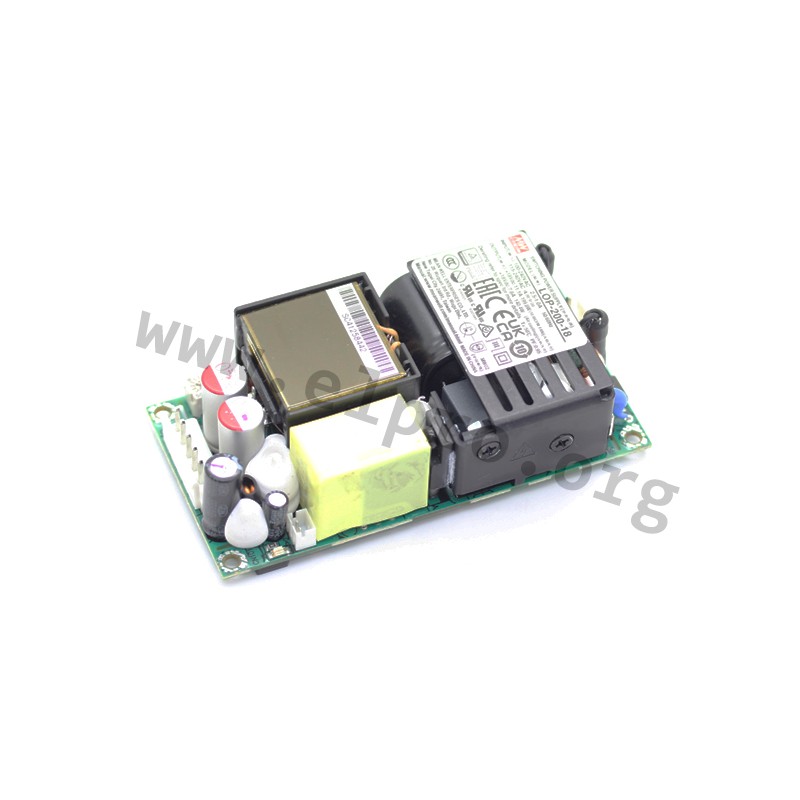Schaltnetzteile in offener Ausführung mit 200W (mit Lüfter), kompakter Bauform (4"x2"), geringer Leerlaufleistung, einstellbarer Ausgangsspannung und Schutzklasse I/II. Diese Geräte haben eine Spitzenlastkapazität von 150%, verfügen über einen eingebauten PFC-Schaltkreis und sind gegen Überlast, Überspannung sowie Kurzschluss geschützt. Sie sind für medizintechnische Anwendungen geeignet (2xMOPP), haben eine eingebaute Lüfterversorgung (12V/0,5A) und entsprechen EN62368-1, EN60335-1, EN61558-1, EN61558-2-16, EN60601-1 sowie EN55032 Klasse A/B. Wir bieten die folgenden Ausführungen dieser Mean Well Serie an: LOP-200-12, LOP-200-15, LOP-200-18, LOP-200-24, LOP-200-27, LOP-200-36, LOP-200-48 und LOP-200-54.