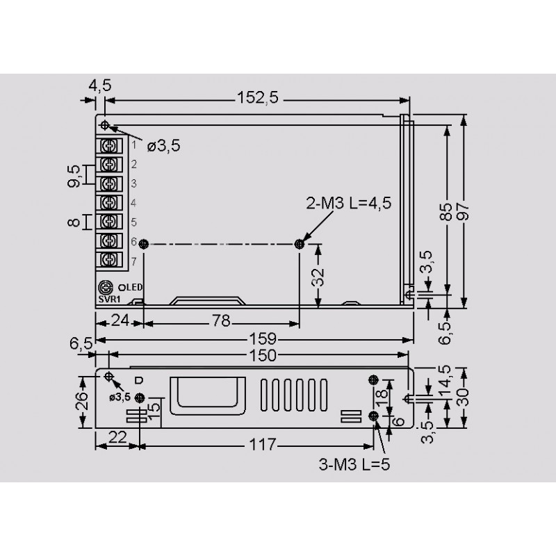 Schaltnetzteile im geschlossenen Gehäuse mit 150W, Schraubanschlüssen, Universaleingang (LRS-150F-_), Umschalter zur Auswahl der Eingangsspannung (LRS-150-_) und niedriger Bauhöhe. Diese Geräte sind für Betriebshöhen von bis zu 5000m geeignet und gegen Überlast (auto recovery), Überspannung sowie Kurzschluss geschützt. Sie haben eine geringe Leerlaufleistung und entsprechen EN62368-1 sowie EN55032 Klasse B. Wir bieten die folgenden Ausführungen dieser Mean Well Serie an: LRS-150-12, LRS-150-15, LRS-150-24, LRS-150-36, LRS-150-48, LRS-150F-5, LRS-150F-12, LRS-150F-15, LRS-150F-24, LRS-150F-36 und LRS-150F-48.