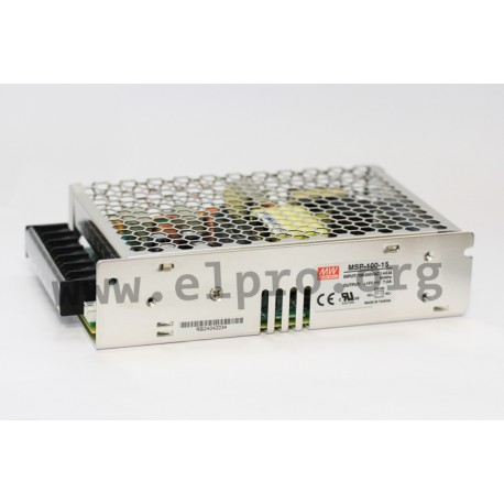 Schaltnetzteile in geschlossener Ausführung mit 100W, Universaleingang, Schraubanschlüssen und niedriger Leerlaufleistung bei der Verwendung von Remote Control. Diese Geräte verfügen über einen eingebauten PFC-Schaltkreis und sind gegen Kurzschluss, Überlast (auto recovery) sowie Überspannung geschützt. Sie sind für medizinische Anwendungen geeignet, entsprechen EN60601-1 (MOOP-Level) und lassen sich über ein Remotesignal Ein- und Ausschalten. Wir bieten die folgenden Ausführungen dieser Mean Well Serie an: MSP-100-3.3, MSP-100-5, MSP-100-7.5, MSP-100-12, MSP-100-15, MSP-100-24, MSP-100-36 und MSP-100-48.
