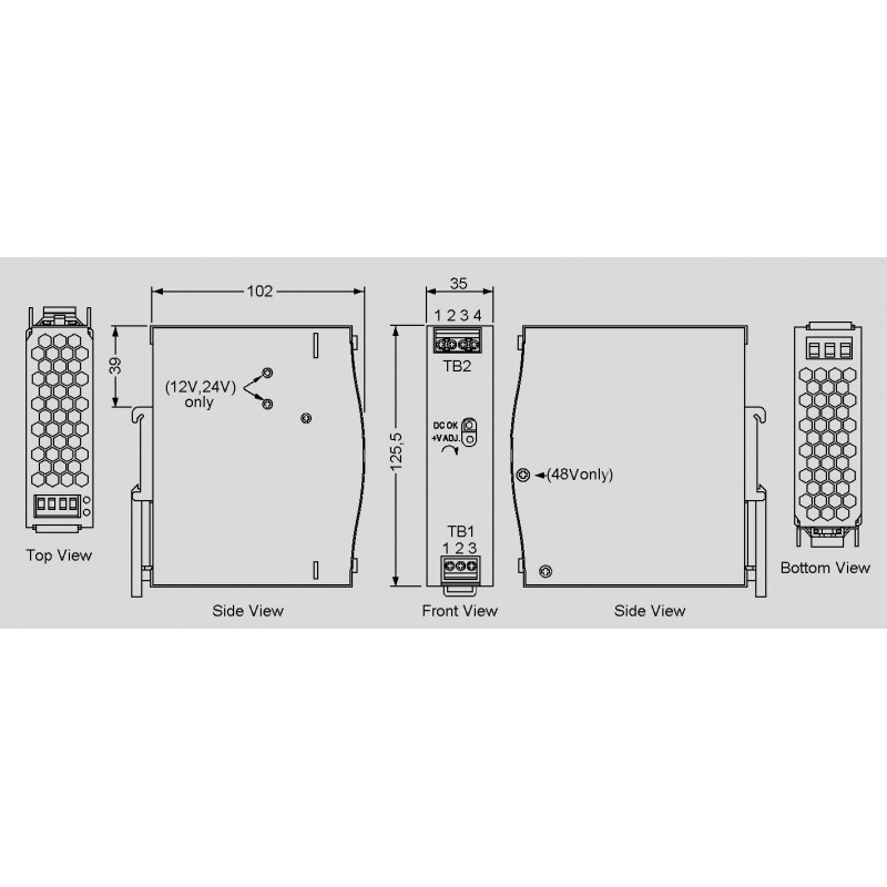 Schaltnetzteile im DIN-Schienen Gehäuse mit 75W, LED-Indikator für DC-OK, Universaleingang und berührungsgeschützten Schraubanschlüssen. Diese Geräte sind für die Montage auf DIN-Schienen geeignet und verfügen über eine lüfterlose Konstruktion. Sie sind gegen Überspannung, Überlast (auto recovery) sowie Kurzschluss geschützt und entsprechen EN61000-3-2, EN61000-3-3, EN61000-6-2, EN55032 Klasse B, EN61204-3 Klasse B, EN62368-1 sowie EN50082-2. Wir bieten die folgenden Ausführungen dieser Mean Well Serie an: NDR-75-12, NDR-75-24 und NDR-75-48.